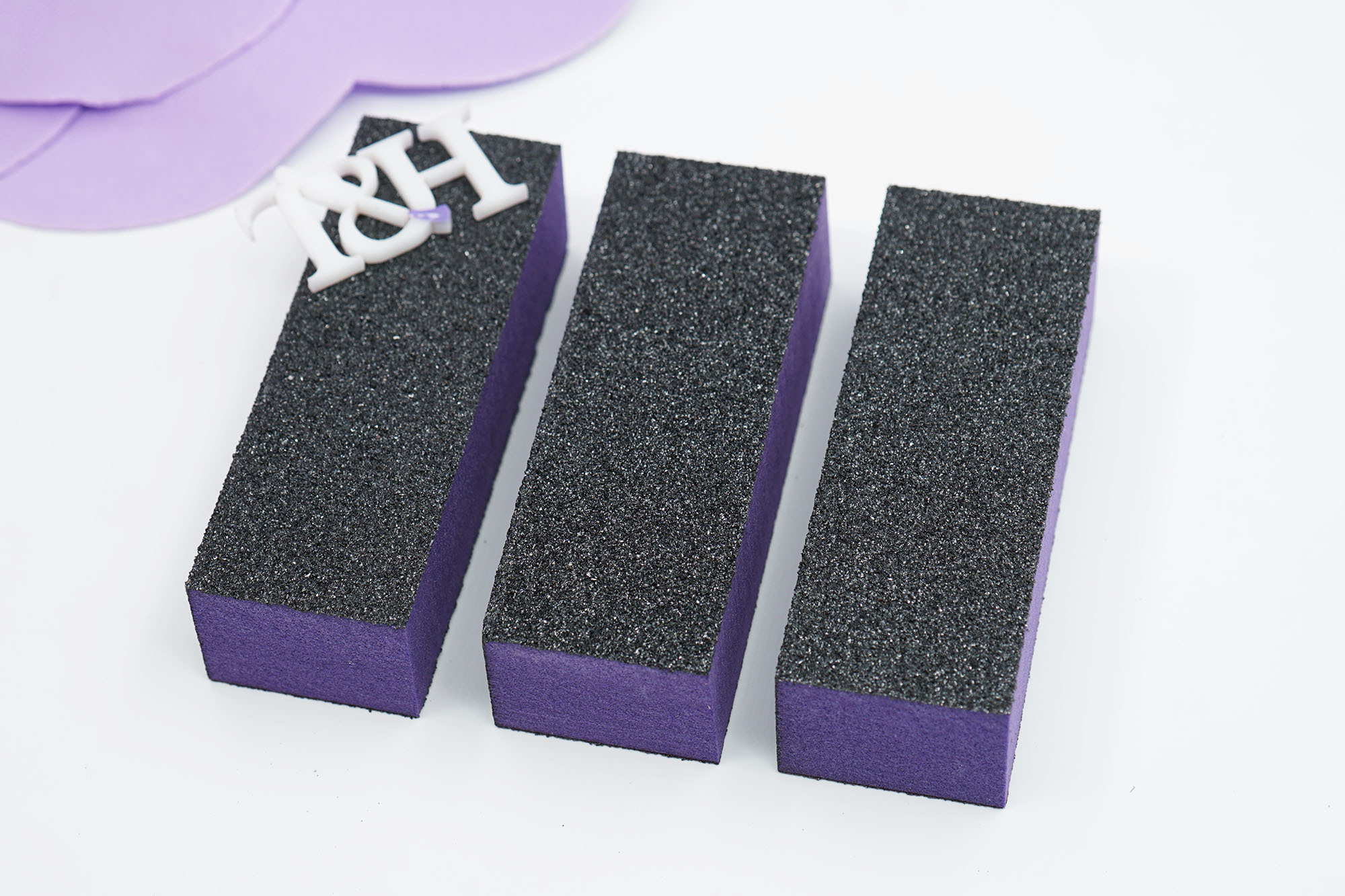Баф профессиональный трехсторонний фиолетовый с абразивностью — 80/100. Имеет три стороны с разной абразивностью, подходит для искусственных ногтей.