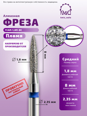 Фреза КМИЗ алмазная, пламя №243.524.018, 1 шт
