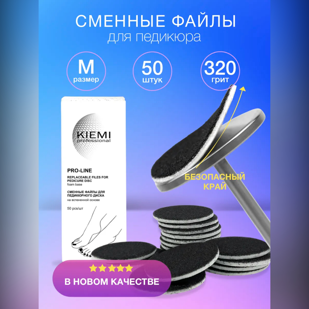 Файлы сменные KIEMI для педикюрного диска на вспененной основе M/20 мм 320 грит, 50 шт