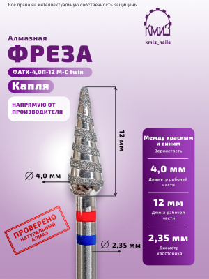 Фреза алмазная капля с закругленным концом