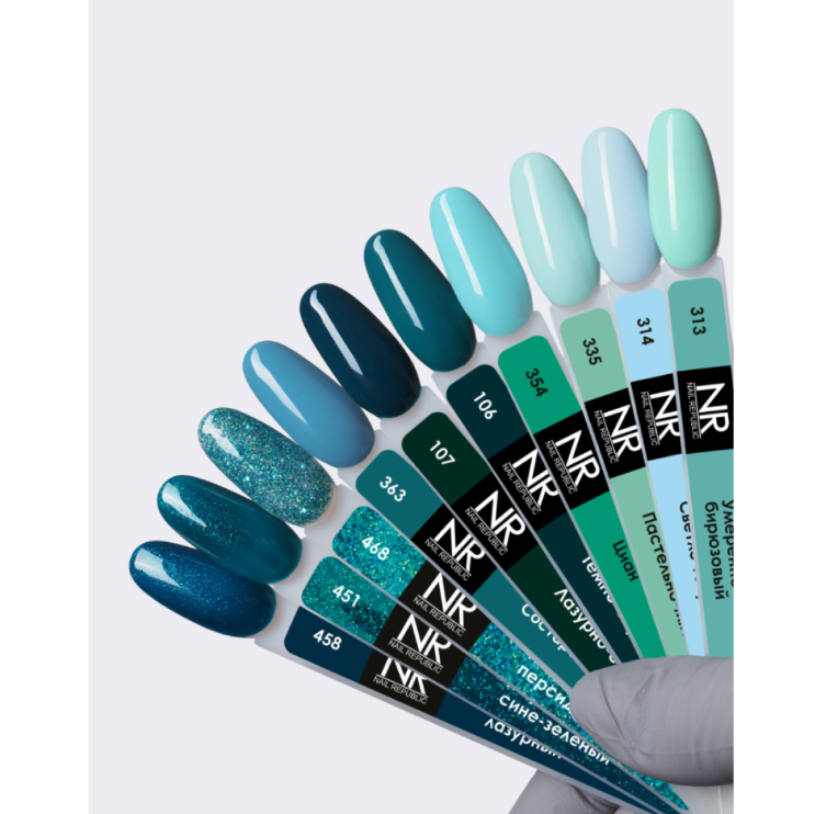 Гель-лак NAIL REPUBLIC NR-451 Aquamarine, Мерцающий сине-зеленый, 10 мл