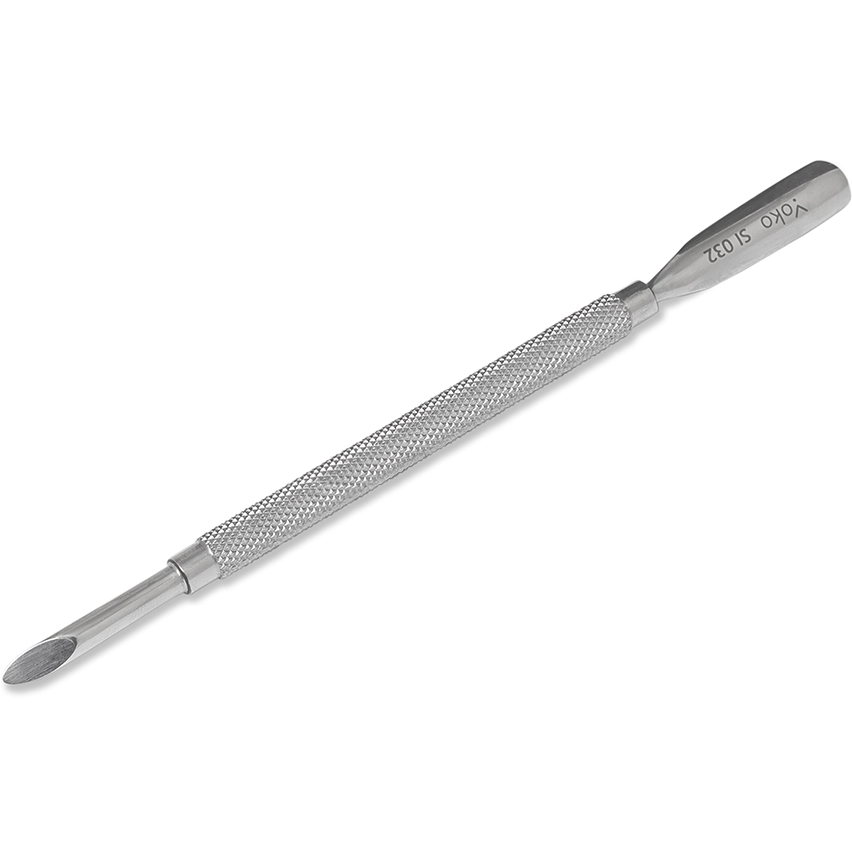 Профессиональный двусторонний шабер с глянцевой поверхностью YOKO изготовлен из высокопрочной нержавеющей стали, устойчив к износу и всем видам стерилизации. Овальная лопатка сдвигает кутикулу, прямоугольная сторона — очищает ногтевое плато от птеригия.
